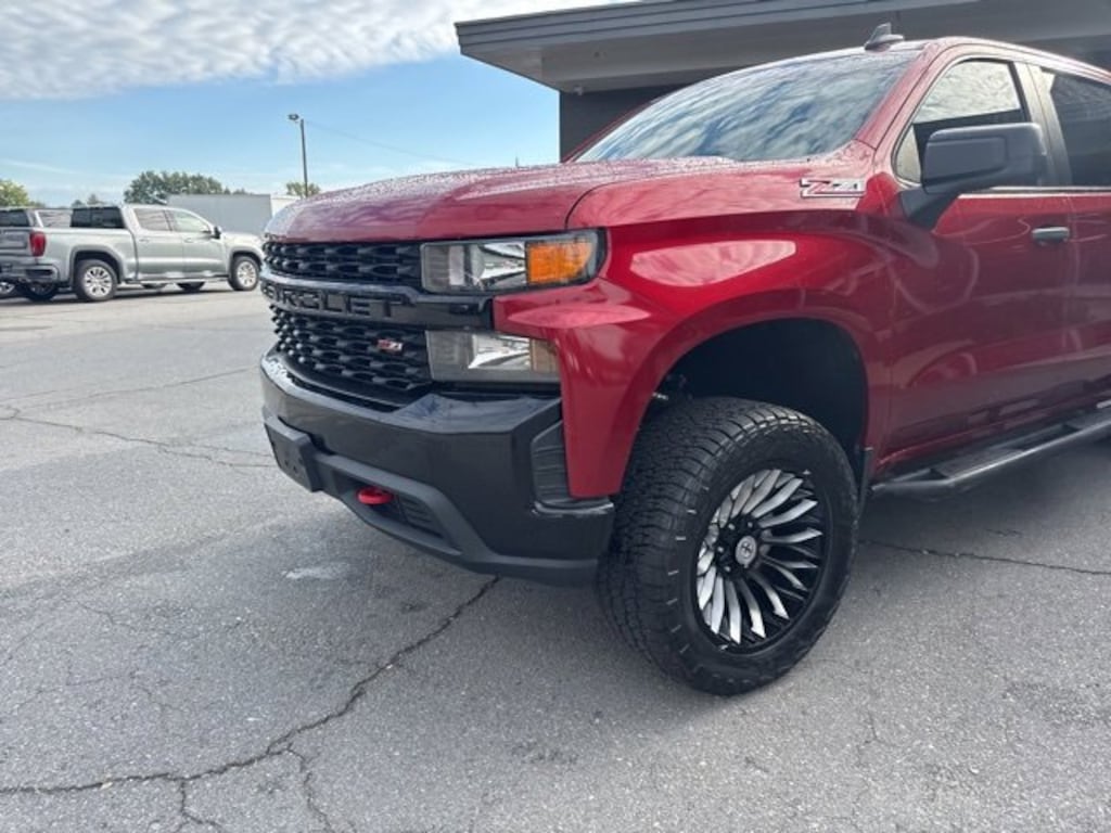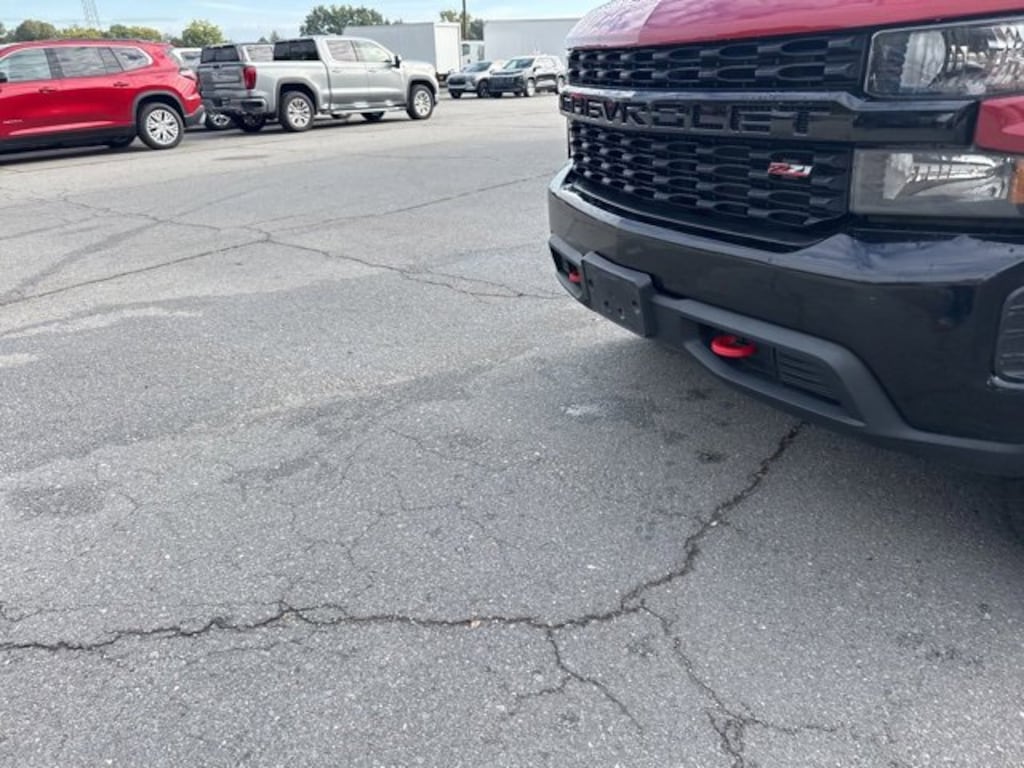 This 2021 Chevrolet Silverado 1500 Custom Trail Boss in Cherry Red Tintcoat comes with the following features: EcoTec3 5.3L V8 6-Speed Automatic Electronic with Overdrive 4WD Custom Convenience Package (Electric Rear-Window Defogger, EZ Lift Power Lock & Release Tailgate, LED Cargo Area Lighting, Remote Vehicle Starter System, and Theft Deterrent System (Unauthorized Entry)), Infotainment Package (4G LTE Wi-Fi Hot Spot Capable, Chevrolet Connected Access Capable, OnStar & Chevrolet Connected Services Capable, and SiriusXM Radio), Preferred Equipment Group 2CX (170 Amp Alternator, 3.5 Diagonal Monochromatic Display, Auto-Locking Rear Differential, Bluetooth® For Phone, Color-Keyed Carpeting Floor Covering, Compass, Deep-Tinted Glass, Electronic Cruise Control, Front Rubberized Vinyl Floor Mats, High Gloss Black Grille, Manual Tilt Wheel Steering Column, Performance Red Recovery Hooks, Power Door Locks, Power Front Windows w/Driver Express Up/Down, Power Front Windows w/Passenger Express Down, Power Rear Windows w/Express Down, Rear 60/40 Folding Bench Seat (Folds Up), Rear Rubberized-Vinyl Floor Mats, Remote Keyless Entry, and Standard Tailgate), Suspension Package (Heavy-Duty Air Filter and Hill Descent Control), Trailering Package (Hitch Guidance), 6-Speed Automatic Electronic with Overdrive, 4WD, Black Cloth, 3.42 Rear Axle Ratio, 4-Wheel Disc Brakes, 40/20/40 Front Split Bench Seat, 6 Speakers, ABS brakes, Air Conditioning, Alloy wheels, AM/FM radio: SiriusXM, Apple CarPlay/Android Auto, Auxiliary External Transmission Oil Cooler, Brake assist, Cloth Seat Trim, Delay-off headlights, Driver door bin, Driver vanity mirror, Dual Exhaust w/Polished Outlets, Dual front impact airbags, Dual front side impact airbags, Electronic Stability Control, Front anti-roll bar, Front Center Armrest w/Storage, Front License Plate Kit, Front reading lights, Front wheel independent suspension, Fully automatic headlights, Heated door mirrors, Illuminated entry, Low tire pressure warning, Not Equipped w/Active Fuel Management, Occupant sensing airbag, Off-Road Suspension w/2 Lift, Outside temperature display, Overhead airbag, Overhead console, Panic alarm, Passenger door bin, Passenger vanity mirror, Polished Exhaust Tip, Power door mirrors, Power steering, Power windows, Premium audio system: Chevrolet Infotainment 3, Radio data system, Radio: Chevrolet Infotainment 3 System, Rear reading lights, Rear step bumper, Rear window defroster, Remote keyless entry, Security system, Speed control, Speed-sensing steering, Split folding rear seat, Tachometer, Tilt steering wheel, Traction control, Trip computer, Variably intermittent wipers, Voltmeter, and Wheels: 18 x 8.5 Black Painted Aluminum.