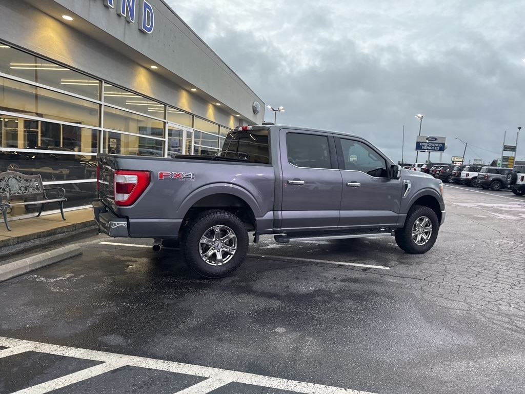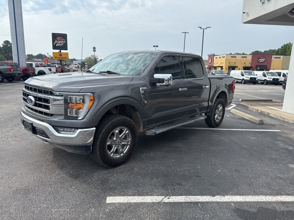 This 2021 Ford F-150 Lariat in Gray comes with the following features: 3.5L V6 EcoBoost 10-Speed Automatic 4WD Equipment Group 501A Mid (Onboard 400W Outlet, Radio: B&O Sound System by Bang & Olufsen, and Universal Garage Door Opener), Ford Co-Pilot360 Assist 2.0 (Connected Built-In Navigation, Evasive Steering Assist, Intelligent Adaptive Cruise Control w/Stop & Go, Intersection Assist, and Speed Sign Recognition), FX4 Off-Road Package, Lariat Chrome Appearance Package (6" Chrome Running Board, Chrome 2-Bar Grille w/4 Minor Bars, Chrome Door & Tailgate Handles w/Body-Color Bezel, Chrome Single-Tip Exhaust, Chrome Skull Caps on Exterior Mirrors, and Wheels: 18" Chrome-Like PVD), Trailer Tow Package (Class IV Trailer Hitch Receiver, Integrated Trailer Brake Controller, and Pro Trailer Backup Assist), 4WD, 18" Machined-Aluminum Wheels, 3.31 Axle Ratio, 360 Degree Camera, 4-Wheel Disc Brakes, 7 Speakers, ABS brakes, Adjustable pedals, Air Conditioning, Alloy wheels, AM/FM radio: SiriusXM with 360L, Auto High-beam Headlights, Auto Start-Stop Removal, Auto-dimming door mirrors, Auto-dimming Rear-View mirror, Automatic temperature control, Brake assist, Bumpers: chrome, Compass, Delay-off headlights, Driver door bin, Driver vanity mirror, Dual front impact airbags, Dual front side impact airbags, Electronic Locking w/3.55 Axle Ratio, Electronic Stability Control, Emergency communication system: SYNC 4 911 Assist, Exterior Parking Camera Rear, Front anti-roll bar, Front Center Armrest w/Storage, Front dual zone A/C, Front fog lights, Front reading lights, Front wheel independent suspension, Fully automatic headlights, Heated door mirrors, Heated front seats, Illuminated entry, Leather-Trimmed 40/20/40 Front Seat, LED Sideview Mirror Spotlights, Low tire pressure warning, Memory seat, Navigation system: Connected Navigation (90-Day Trial), Occupant sensing airbag, Outside temperature display, Overhead airbag, Overhead console, Panic alarm, Passenger door bin, Passenger vanity mirror, Pedal memory, Power door mirrors, Power driver seat, Power passenger seat, Power steering, Power windows, Radio data system, Radio: AM/FM SiriusXM w/360L, Rear reading lights, Rear seat center armrest, Rear step bumper, Rear window defroster, Remote keyless entry, Security system, Speed control, Speed-sensing steering, Split folding rear seat, Steering wheel mounted audio controls, SYNC 4 w/Enhanced Voice Recognition, Tachometer, Telescoping steering wheel, Tilt steering wheel, Traction control, Tray Style Floor Liner (47W), Trip computer, Turn signal indicator mirrors, Variably intermittent wipers, Ventilated front seats, and Voltmeter. 4WD.