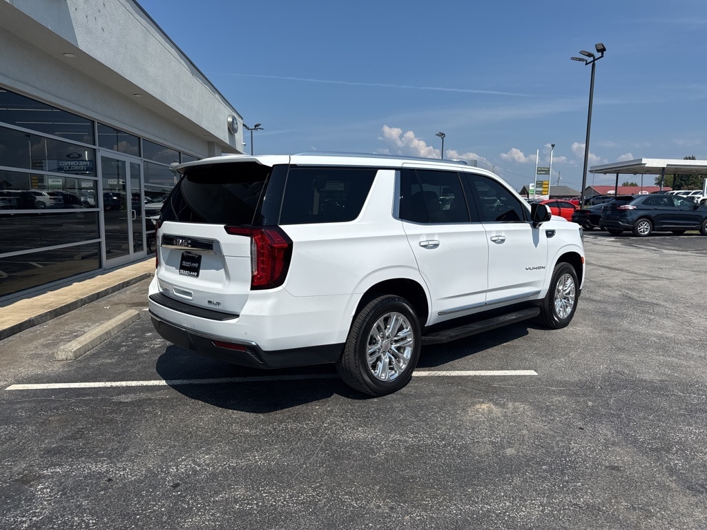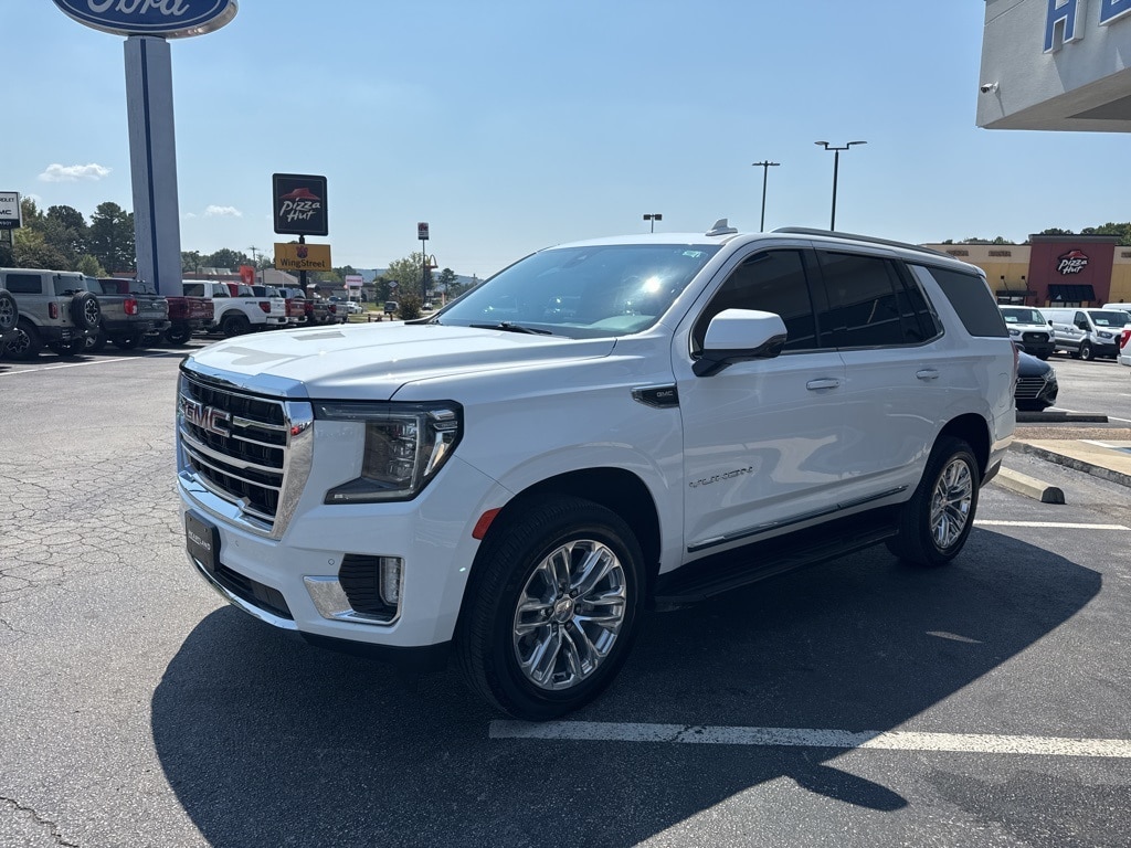 This 2021 GMC Yukon SLT in Summit White comes with the following features: EcoTec3 5.3L V8 10-Speed Automatic with Overdrive RWD License Plate Front Mounting Package, Max Trailering Package (Extra Capacity Cooling System), Preferred Equipment Group 4SA (12-Way Power Seat Adjusters, 2 Presets For Power Driver Seat, Bose 9-Speaker Stereo Audio System Feature, Bright Chrome Bodyside Moldings, Bright Front & Rear Door Sill Plates, Chrome Door Handles w/Body-Color Strip, Hands-Free Power Programmable Rear Liftgate, Heated & Ventilated Driver & Front Passenger Seats, Heated Driver & Front Passenger Seats, Inside Rear-View Auto-Dimming Mirror, and Universal Home Remote), Rear Media & Nav Package (HD Radio, Radio: AM/FM/SiriusXM w/Navigation, Rear Seat Media System, and SiriusXM w/360L), SLT Luxury Package (2 Presets For Outside Rearview Mirrors, 3rd Row 60/40 Power-Folding Split-Bench Seat, HD Surround Vision, Heated 2nd Row Outboard Position Seats, Heated Automatic Steering Wheel, Outside Heated Power-Adjustable Mirrors, Power Tilt & Telescopic Steering Column, and Rear Pedestrian Alert), SLT Luxury Plus Package (DISC) (Dual-Pane Panoramic Power Sunroof), 3.23 Rear Axle Ratio, 3rd row seats: split-bench, 4-Wheel Disc Brakes, 9 Speakers, ABS brakes, Air Conditioning, Alloy wheels, AM/FM radio: SiriusXM with 360L, Apple CarPlay/Android Auto, Auto High-beam Headlights, Auto-dimming Rear-View mirror, Automatic Emergency Braking, Automatic temperature control, Bodyside moldings, Brake assist, Bumpers: body-color, Compass, Delay-off headlights, Driver door bin, Driver vanity mirror, Dual front impact airbags, Dual front side impact airbags, Electronic Stability Control, Emergency communication system: OnStar and GMC connected services capable, Following Distance Indicator, Forward Collision Alert, Four wheel independent suspension, Front anti-roll bar, Front Bucket Seats, Front Center Armrest, Front dual zone A/C, Front fog lights, Front Pedestrian Braking, Front reading lights, Fully automatic headlights, Garage door transmitter, Heated door mirrors, Heated front seats, Hitch Guidance w/Hitch View, Illuminated entry, In-Vehicle Trailering App, Integrated Trailer Brake Controller, IntelliBeam Automatic High Beam On/Off, Lane Change Alert w/Side Blind Zone Alert, Lane Keep Assist w/Lane Departure Warning, Leather steering wheel, Low tire pressure warning, Memory seat, Occupant sensing airbag, Outside temperature display, Overhead airbag, Overhead console, Panic alarm, Passenger door bin, Passenger vanity mirror, Perforated Leather Seating Surfaces, Power door mirrors, Power driver seat, Power Liftgate, Power passenger seat, Power Release 2nd Row Bucket Seats, Power steering, Power windows, Premium Smooth Ride Suspension, Radio: AM/FM/SiriusXM, Rain sensing wipers, Rear air conditioning, Rear anti-roll bar, Rear Cross Traffic Alert, Rear reading lights, Rear seat center armrest, Rear window defroster, Rear window wiper, Remote keyless entry, Roof rack: rails only, Security system, Speed control, Speed-sensing steering, Split folding rear seat, Spoiler, Steering wheel mounted audio controls, Tachometer, Telescoping steering wheel, Tilt steering wheel, Traction control, Trailer Side Blind Zone Alert, Trailer Tire Pressure Monitor Sensors, Trip computer, Variably intermittent wipers, Ventilated front seats, Voltmeter, and Wheels: 20" x 9" 6-Spoke Polished Aluminum.