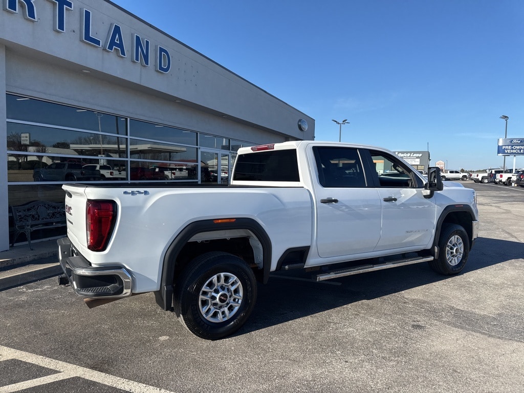 This 2023 GMC Sierra 2500HD Pro in Summit White comes with the following features: 6.6L V8 6-Speed Automatic 4WD Convenience Package (Deep-Tinted Glass, Electric Rear-Window Defogger, EZ Lift Power Lock & Release Tailgate, LED Cargo Area Lighting, Outside Power-Adjustable Black Mirrors, Remote Keyless Entry, and Steering Wheel-Mounted Cruise Control), Gooseneck/5th Wheel Package (Integrated Trailer Brake Controller and Spray-On Pickup Box Bed Liner), Gooseneck/5th Wheel Prep Package, Preferred Equipment Group 1SA (2-Speed Electronic Shift Transfer Case, Chrome Surround Grille w/Black Mesh, Power Rear Windows w/Express Down, and Solar Absorbing Glass), Suspension Package, 6-Speed Automatic, 4WD, Black Cloth, 17" Machined Aluminum Wheels, 17" Steel Wheels, 3.73 Rear Axle Ratio, 4-Way Manual Driver Seat Adjuster, 4-Way Manual Passenger Seat Adjuster, 4-Wheel Disc Brakes, 6 Speakers, 6-Speaker Audio System Feature, ABS brakes, Air Conditioning, AM/FM radio, Apple CarPlay/Android Auto, Auto-Dimming Inside Rear-View Mirror, Black Front & Rear Molded Splash Guards (LPO), Brake assist, Bumpers: chrome, Delay-off headlights, Driver door bin, Dual front impact airbags, Dual front side impact airbags, Electronic Stability Control, Exterior Parking Camera Rear, Front 40/20/40 Split-Bench Seats, Front anti-roll bar, Front Center Armrest w/Storage, Front License Plate Kit, Front reading lights, Front wheel independent suspension, Fully automatic headlights, Heavy-Duty 80 Amp Battery, Low tire pressure warning, Occupant sensing airbag, Outside Pwr-Adjustable Vertical Trailering Mirrors, Outside temperature display, Overhead airbag, Overhead console, Passenger door bin, Passenger vanity mirror, Perimeter Lighting, Pickup Box, Power steering, Power windows, Premium audio system: GMC Infotainment System, Radio: AM/FM w/GMC Infotainment System, Rear reading lights, Rear step bumper, Split folding rear seat, Tachometer, Tilt steering wheel, Traction control, Trip computer, Variably intermittent wipers, Vinyl Seat Trim, and Voltmeter. 6-Speed Automatic, 4WD, Black Cloth.