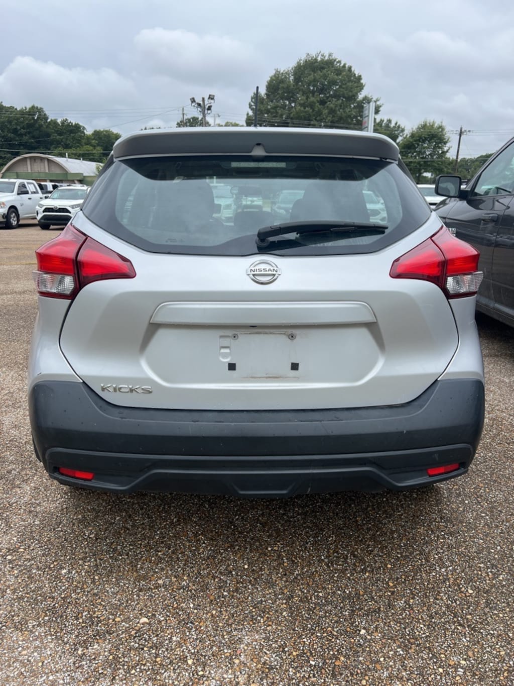 This 2018 Nissan Kicks S in Brilliant Silver comes with the following features: 1.6L 4-Cylinder DOHC 16V CVT with Xtronic FWD 16" Steel Wheels w/Full Covers, 3.927 Axle Ratio, 6 Speakers, ABS brakes, Air Conditioning, AM/FM radio, Brake assist, Bumpers: body-color, Carpeted Floor Mats w/Cargo Mat, Cloth Seat Trim, Driver door bin, Driver vanity mirror, Driver's Seat Mounted Armrest, Dual front impact airbags, Dual front side impact airbags, Electronic Stability Control, Front anti-roll bar, Front Bucket Seats, Front reading lights, Front wheel independent suspension, Fully automatic headlights, Illuminated entry, Knee airbag, Low tire pressure warning, Occupant sensing airbag, Overhead airbag, Panic alarm, Passenger door bin, Passenger vanity mirror, Power door mirrors, Power steering, Power windows, Radio data system, Radio: AM/FM Audio System, Rear reading lights, Rear Spoiler, Rear window defroster, Rear window wiper, Remote keyless entry, Roof rack: rails only, Speed control, Splash Guards (4 Piece), Split folding rear seat, Sport steering wheel, Steering wheel mounted audio controls, Tachometer, Telescoping steering wheel, Tilt steering wheel, Traction control, Trip computer, and Variably intermittent wipers.